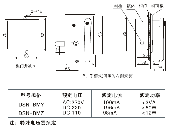 安装方式:DSN-AMZ左开安装/DSN-AMY右开安装