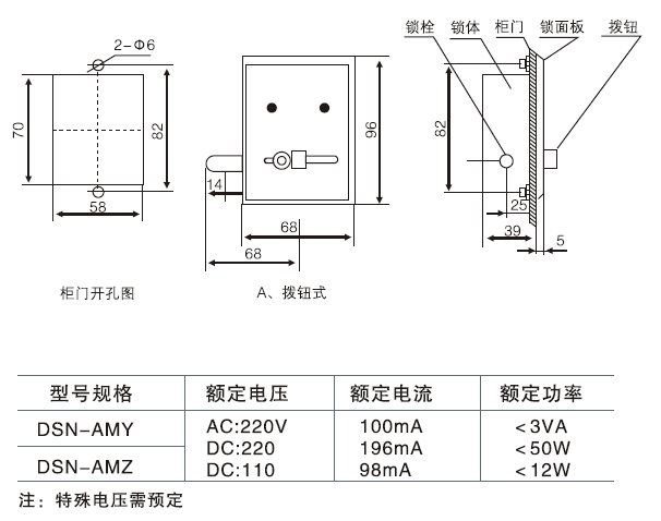 安装方式:DSN-BMZ左开安装/DSN-BMY右开安装
